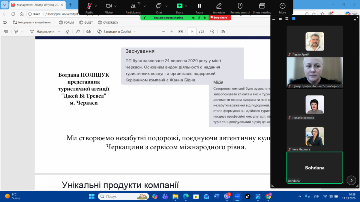 - Богдана Поліщук – головна менеджерка туристичної агенції «Джей Бі Тревел» (м. Черкаси).