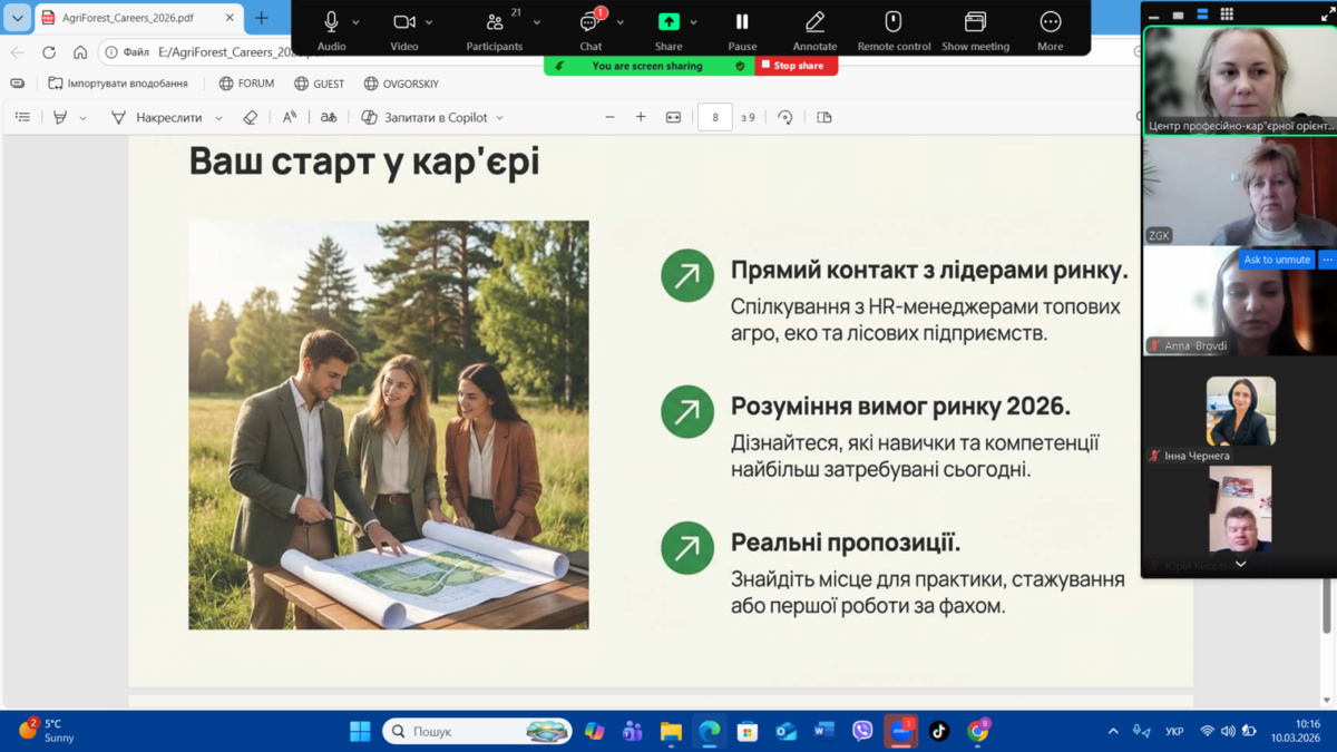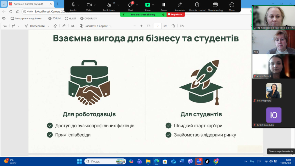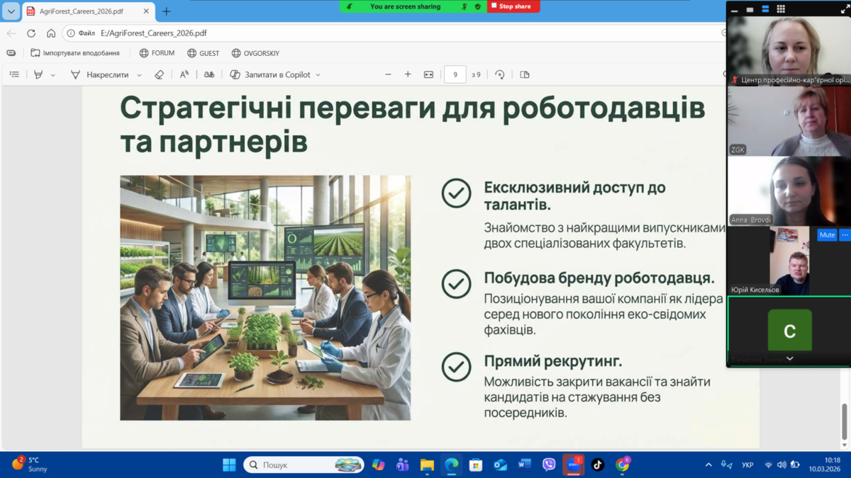 10 березня 2026 року на факультеті лісового і садово-паркового господарства Уманського національного університету відбувся традиційний Ярмарок вакансій для здобувачів вищої освіти освітніх рівнів бакалавр та магістр. Захід організовано Відділом професійно-кар’єрної орієнтації Центру професійно-кар’єрної орієнтації та доуніверситетської підготовки університету.